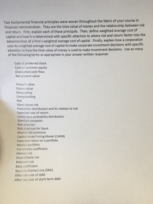 Solved Two Fundamental Financial Principles Were Woven Th