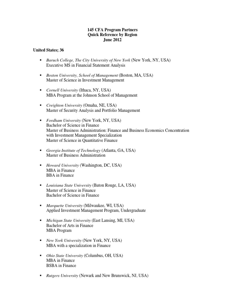 Cfa Program Partners By Region Master Of Science Master Of